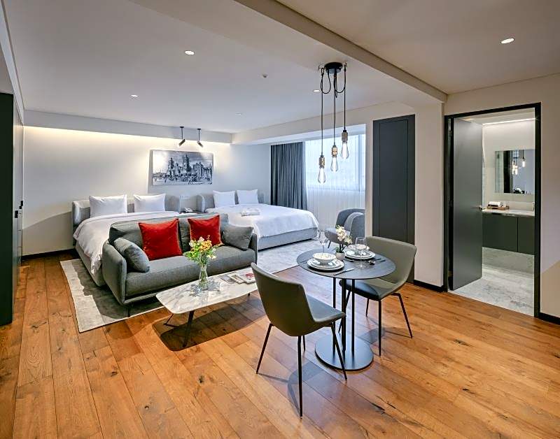 This suite is consisted of of 1 living room, 1 separate bedroom and 1 bathroom with a shower and free toiletries. Meals can be prepared in the well-fitted kitchen, which is fitted with a refrigerator, kitchenware and a microwave. The air-conditioned suite offers a flat-screen TV with cable channels, a tea and coffee maker, a seating area, a dining area as well as city views. The unit offers 1 bed.